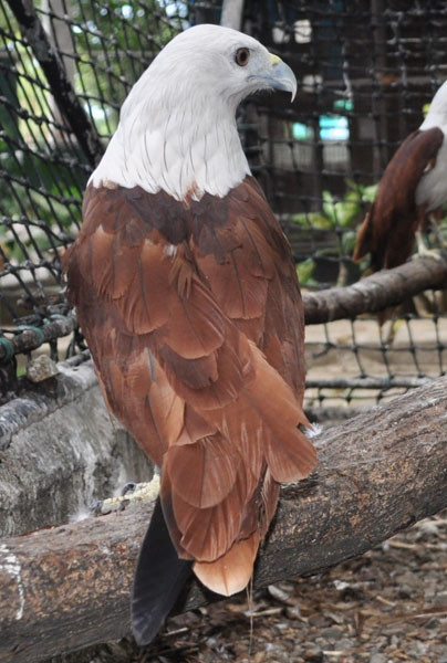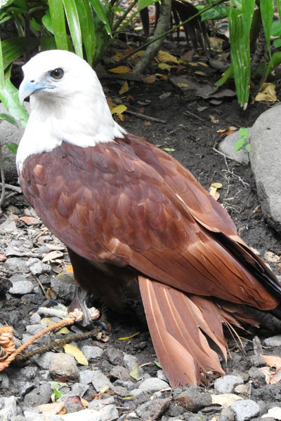 Head, neck, and throat white; eye brown to dark brown; cere yellowish; bill greyish blue green.