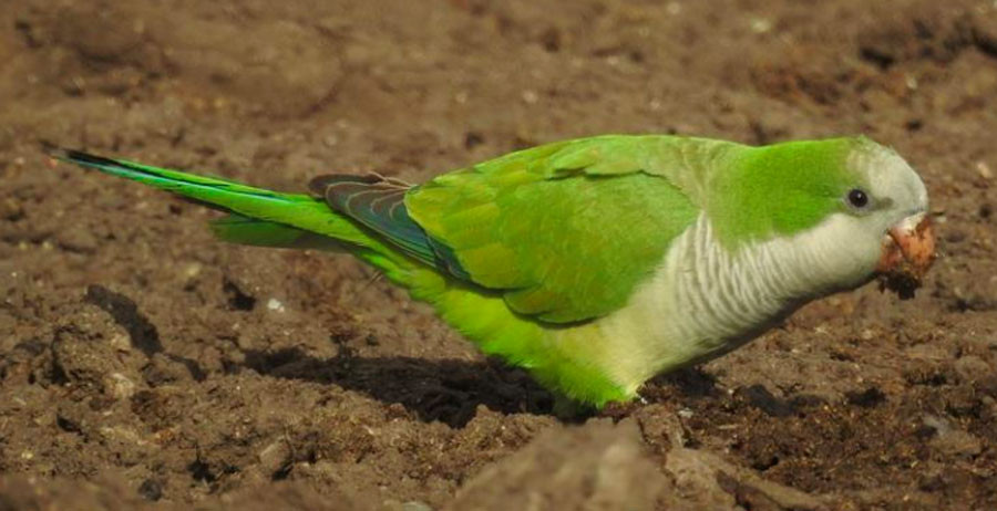 Limbs and tail: Legs and feet grey; tail green with turquoise blue tip.