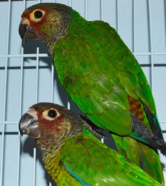 Limbs and tail: Legs and feet grey; tail green with dull red tip.