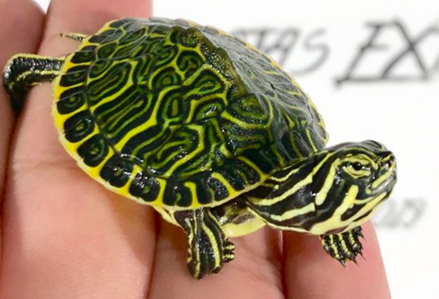 Plastron: Yellow without markings;; older males may become darker; dark spots on the underside of the marginals.