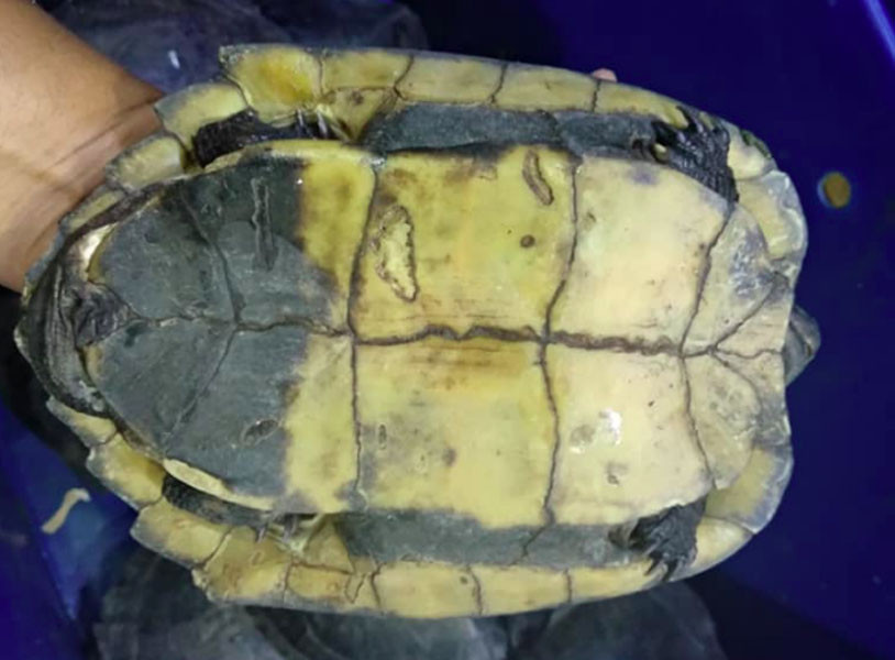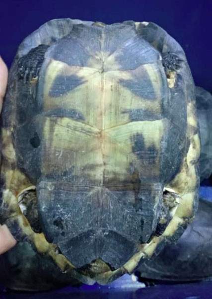 Plastron - anal scutes notched; dark brown to black in color; anterior and median seams may be pale yellow.