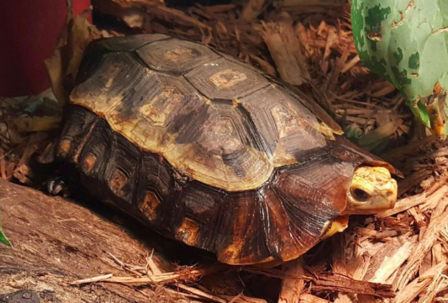 Carapace- dark brown with some yellowish spots; domed with flat dorsal surface; some with low keel; sloping sides; anterior margins flared, slightly reverted (going back); abrupt drop starting on anterior portion of 5th vertebral; 2nd to 5th vertebral broader than long; 5th flared and widest; posterior portion of carapace reverted (going back) to anterior part of 5th vertebral scute.