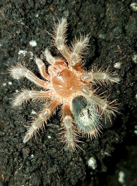 Head and body: heavy-bodied; uniform black. Limbs: femur jet black; rest of legs black covered with brown setae (hair); patella and tibia with median light brown stripe.