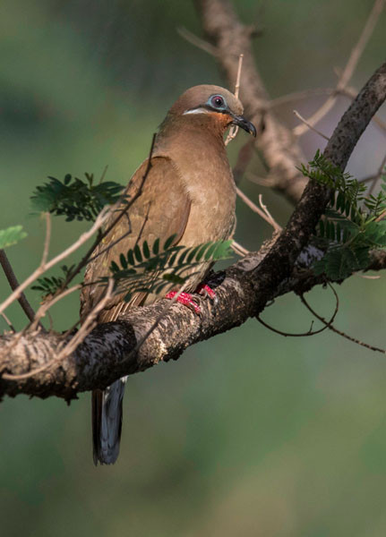 Limbs and tail: Legs and feet pink to red; tail brown with grey tip.