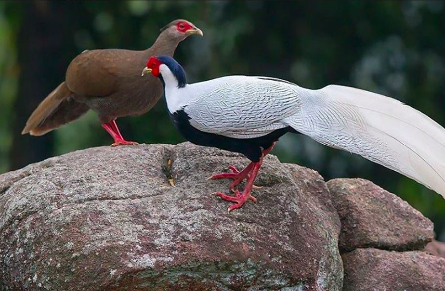 Limbs and tail: Legs and feet red; tail long white above, below with black streaks (male).