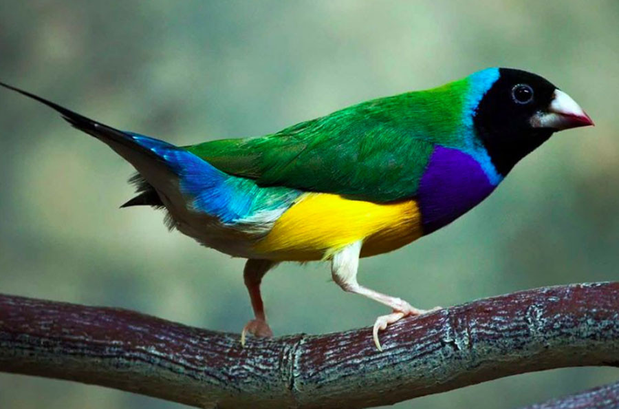 Limbs and tail: Legs and feet light pink; tail long pointed central feather, blue at base.