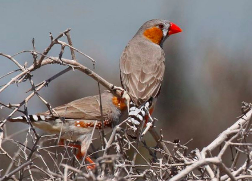 Limbs and tail: Legs and feet orange; tail black with white bars.