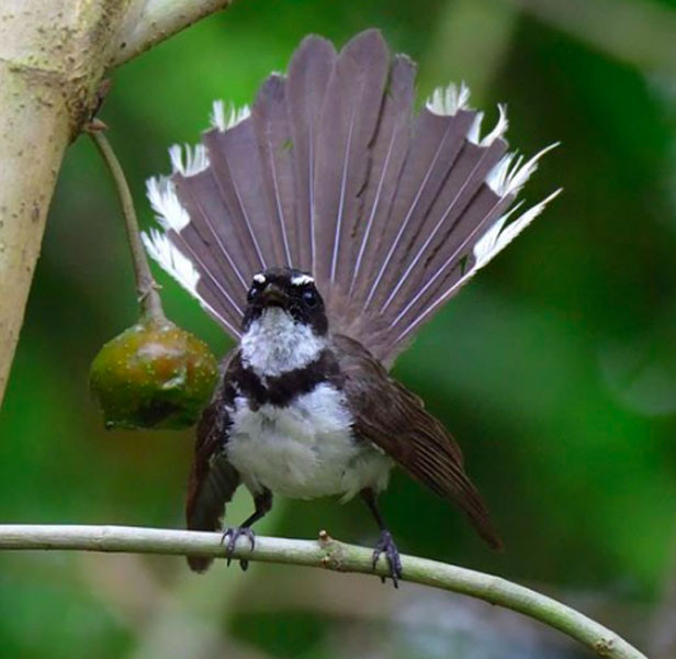Body: Overall dark grey to dark brownish grey; breast and abdomen whitish.