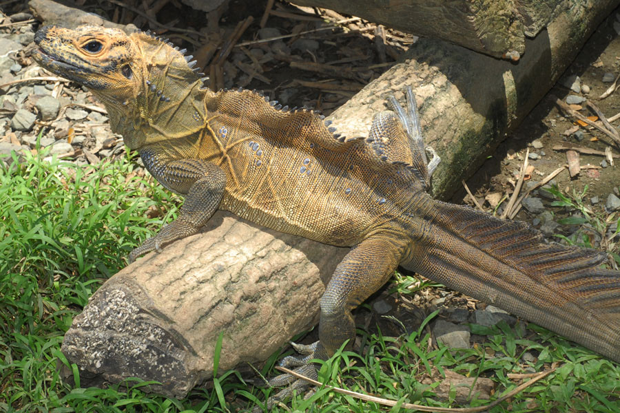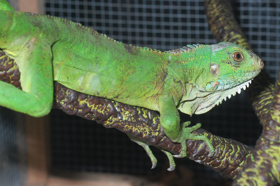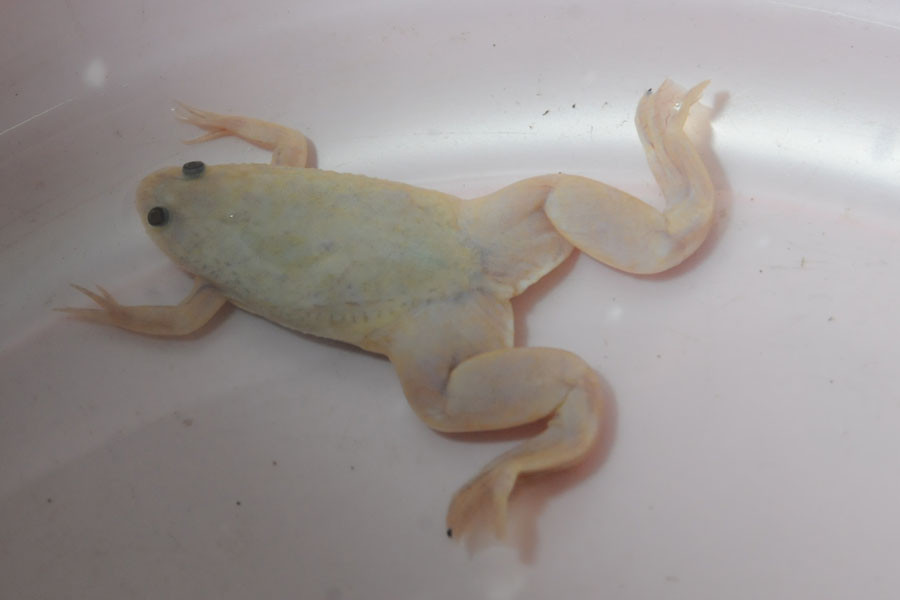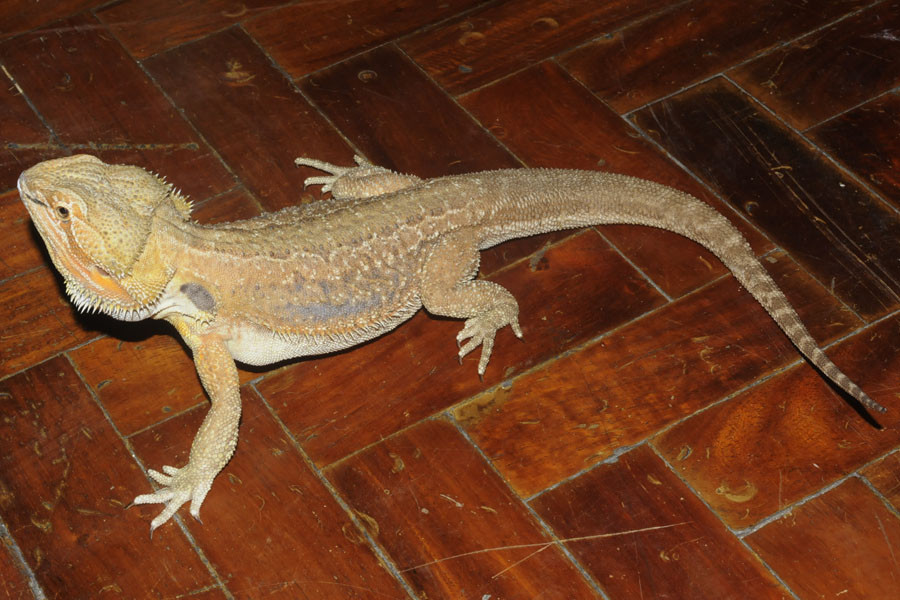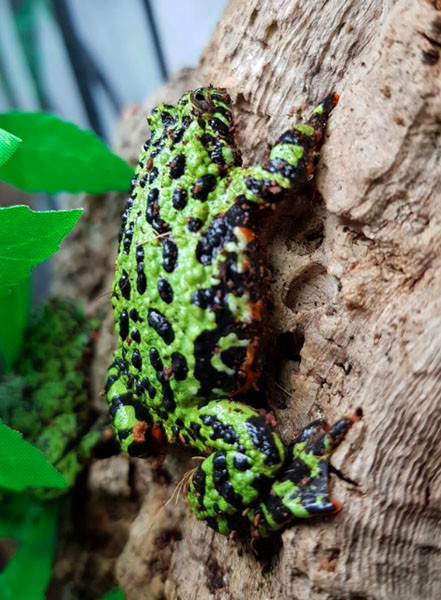 Head and neck: No tympanic membrane present; pupils are triangular; tubercles on the head Body:...