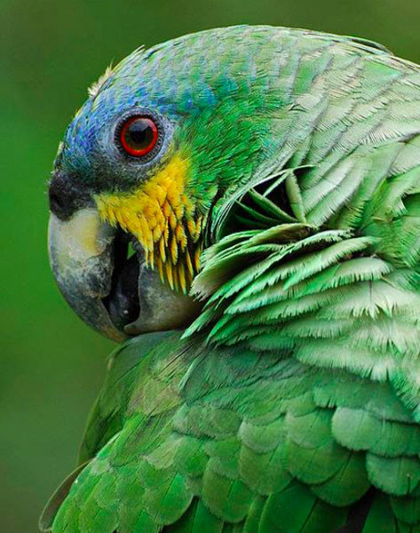Head and neck: bright yellowish green; eye dark brown; cere grey; bill bluish grey. Body: Back, r...