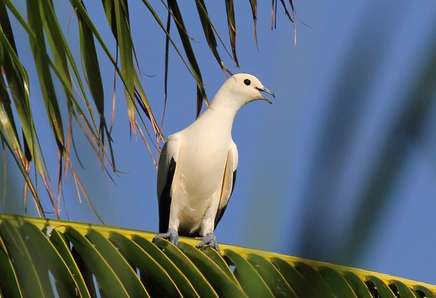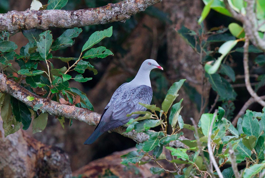 A medium pigeon; sexes are different. Head and neck: Head and neck silvery grey to pale blui...