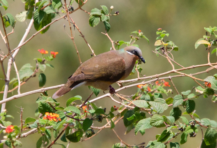 A small dove; 23-24 cm TL; 82-158 g; sexes are alike in appearance. Head and neck: Forehead g...