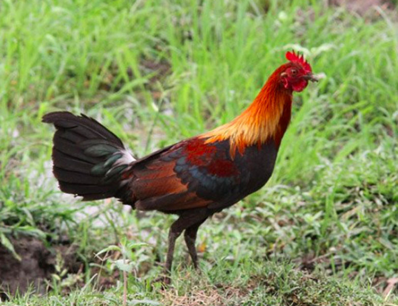Head and neck: Head with large comb red; skin on face red; wattle red; neck covered with long slende...