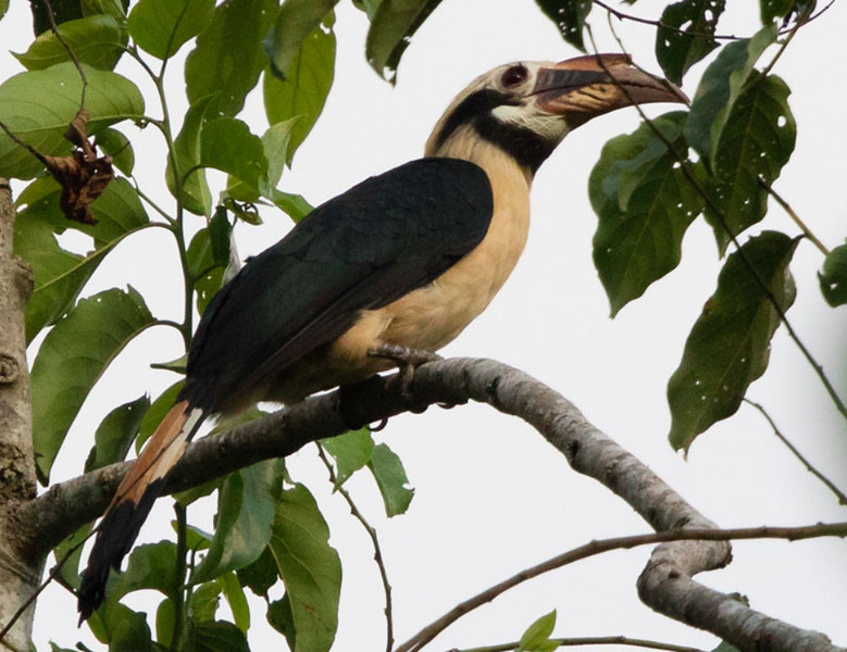Head and neck: head, neck and throat black; casque and bill pale ivory yellow to white; eye brown; b...