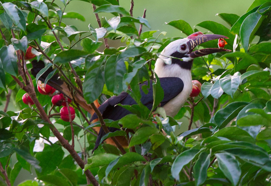 Small hornbill; 45 cm TL; sexes are different; prominent ridged bill. ...