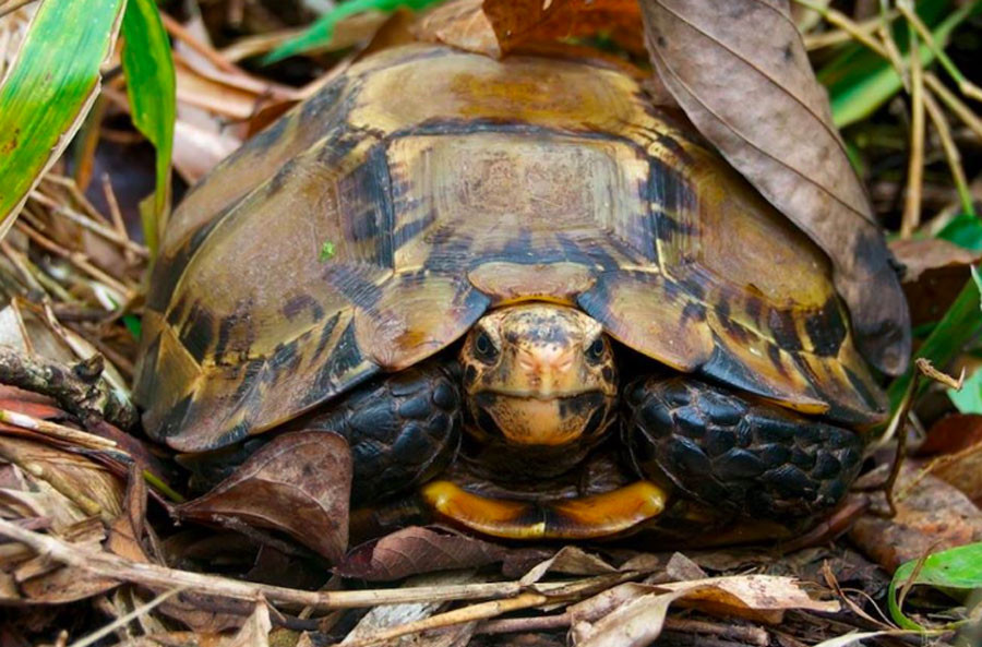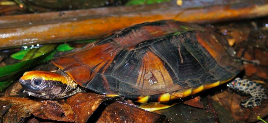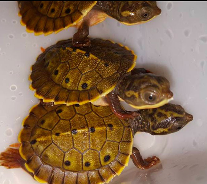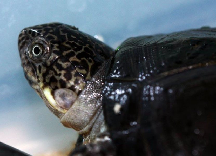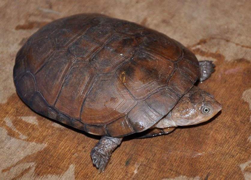 Head and neck: Head brown to black; chin lighter color. Body Carapace- yellow, greenish brown, o...