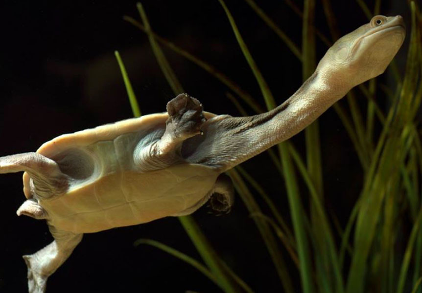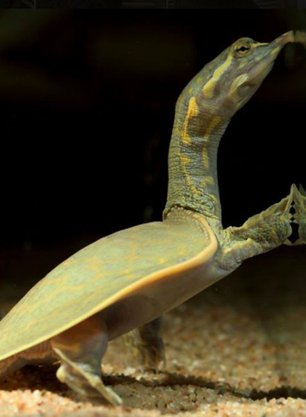 Head and neck: Head is narrow with long and protuding snout; neck is long; eyes are almost at the ...