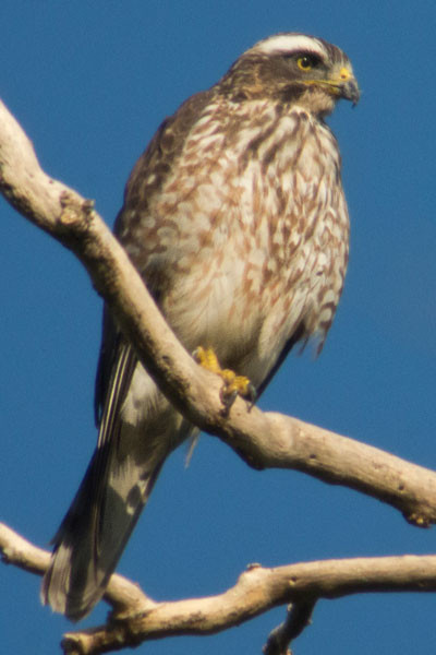 A medium Accipter; 52-59 cm TL; sexes are alike in appearance. Head and neck: Head and neck da...