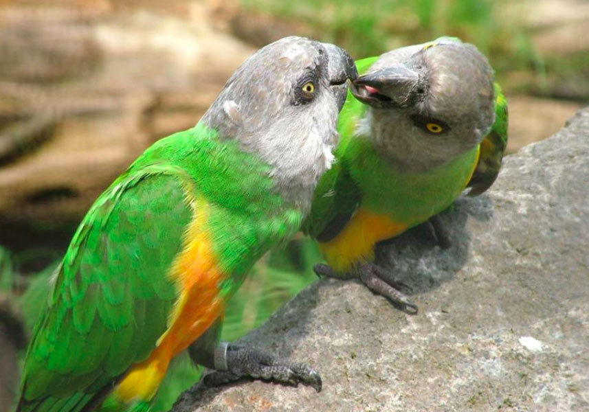 Body: Upper body green; breast green, V-shaped; abdomen yellowish orange; primaries grey.