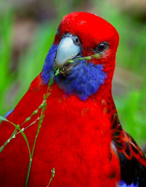 Limbs and tail: Legs and feet grey; thigh coverts red; tail greyish blue.