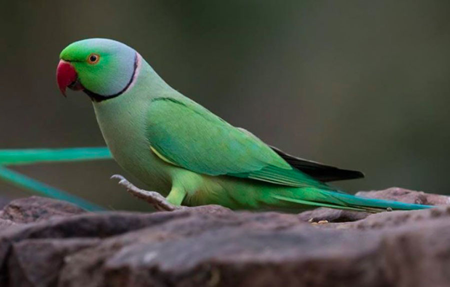 Limbs and tail: Legs and feet light grey; tail long, yellowish green; middle tail feathers turquoise blue.