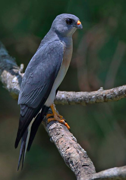 Limbs and tail: Legs and feet bright yellow; tail grey with 4 or 5 narrow dark bars.