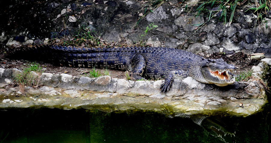 Body: Largest extant crocodilian attaining up to 7m in TL; ventral scale row 29-34; females significantly smaller, 2.2-2.5m TL; dorsal and lateral of body and lateral of tail with dark spots