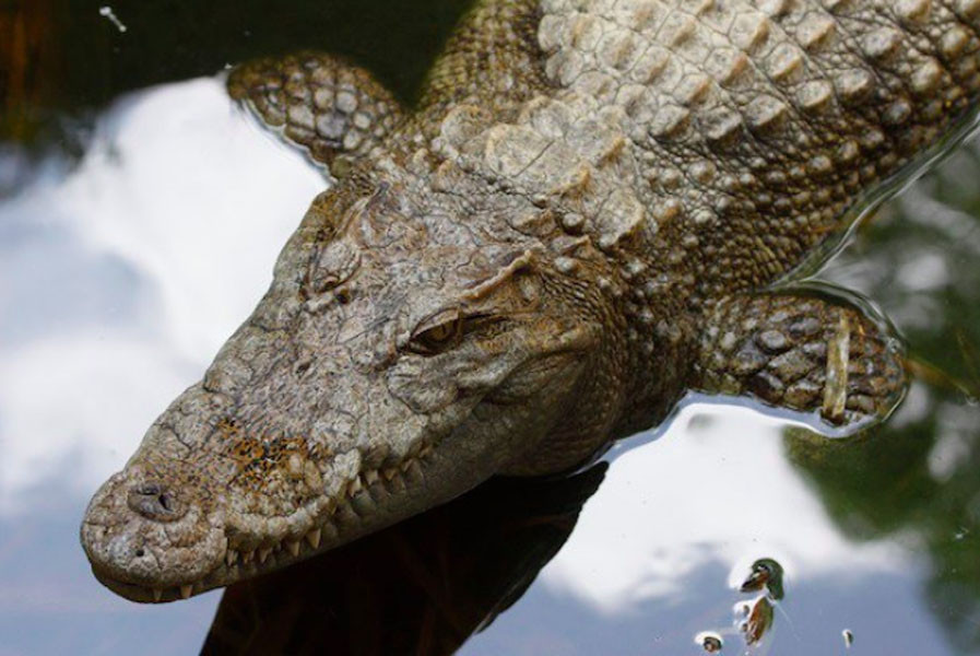 Body: Moderate-sized crocodile; greenish brown with black spots and blotches.