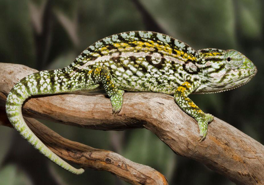 Head and neck: green to brown with dark radiating lines from eye outwards; cranial crest low; eye conical