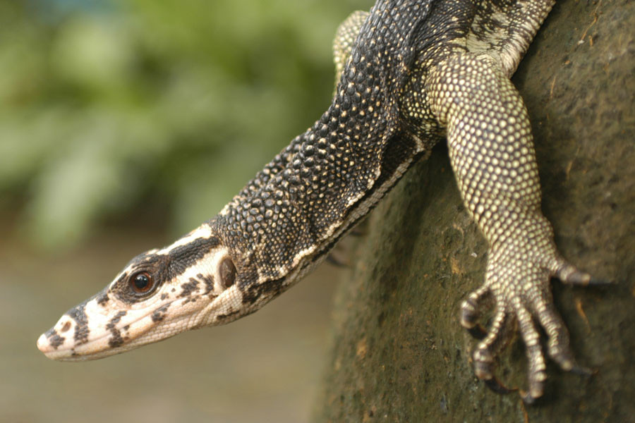 Limbs and tail: Tail is black, whitish mottled near the base and with distinct bright crossbands towards the tip.