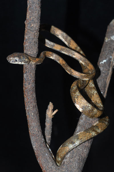 Body: very slender; compressed; brown with darker brown, transverse bands or blotches; ventral with dark brown spots; 110 cm SVL.
