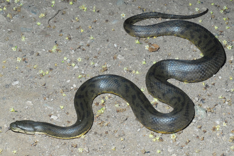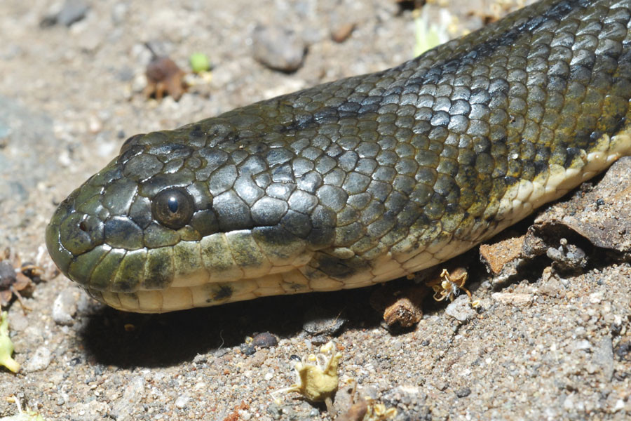 moderately robust body; scale rows 23 to 25; dark grey to greenish grey with dark blotches; ventral is mottled; 47cm SVL.