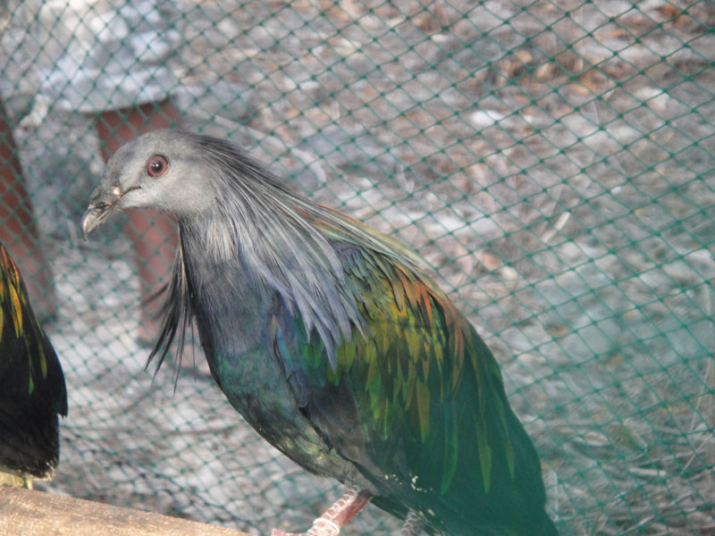 Head and neck: head, neck, and throat dark grey; back of neck with long slender feathers (hackles); bill black with knot at base.