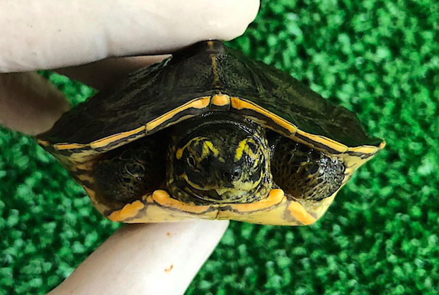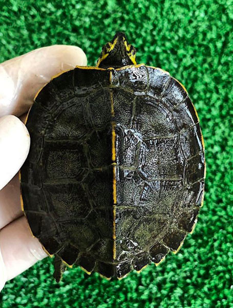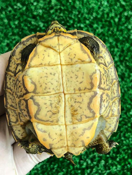 Plastron - yellow with large black spot on each scute; plastron is connected to carapace by ligaments; plastrons of old individuals may be entirely black; anal scutes notched.