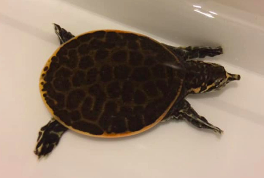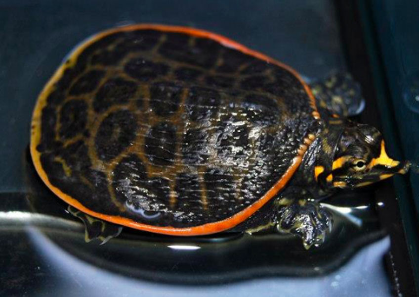 Carapace- marginal ridge well-defined; brown to grey with dark blotches; anterior carapacial rim with blunt, enlarged tubercles; small tubercles on dorsal surface;