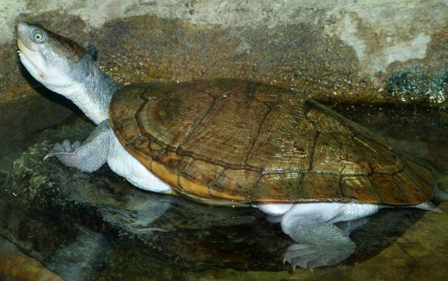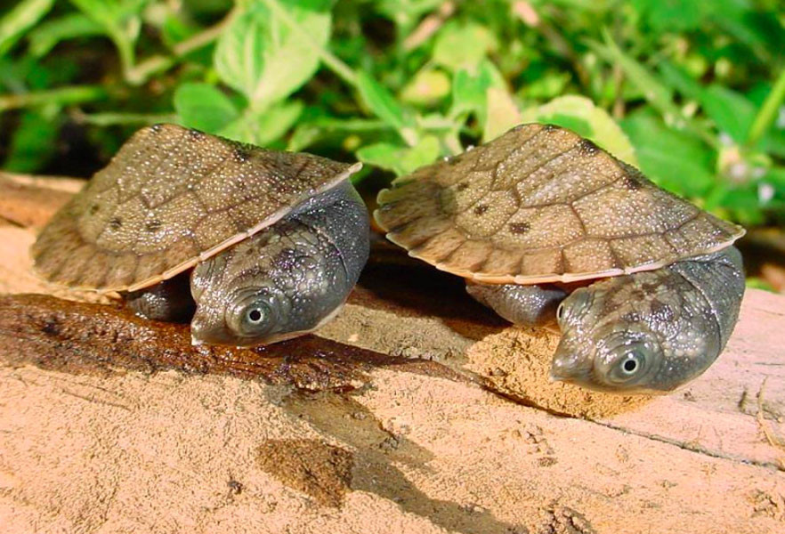 Carapace- brown to black; round to oval in shape; usually with vertebral keel; widest behind the center; cervical scute well-developed; vertebral broader than long; 5th smallest; 2nd largest; posterior rim slightly serrated