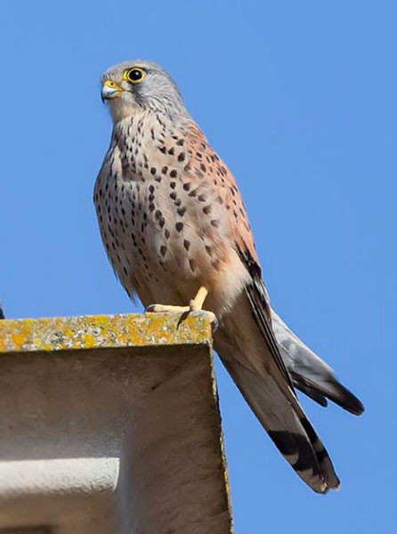 Limbs and tail: Legs and feet yellow; tail grey with black tip (male), brown with bars and black tip (female).