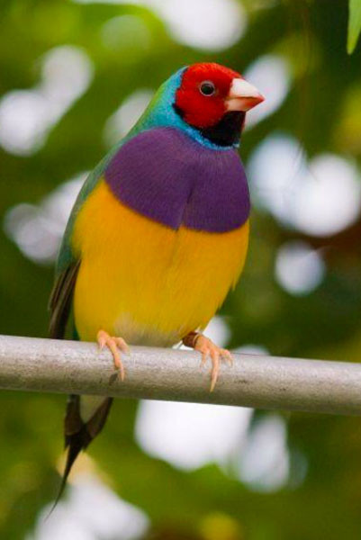 Head and neck: Head variable from black, golden yellow, to red (morphs); crown with light blue band traversing behind cheek to throat; nape green skin around eye pale light blue; eye dark brownbill white with red tip, domesticated strains may be yellow or red; throat black, lower throat with narrow light blue band.