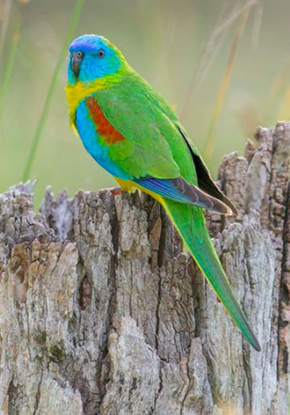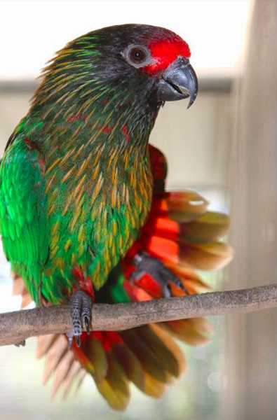 The smallest parrot in the Philippines with 9 subspecies; 14 cm TL; 31-40 g. Head and neck: Extent o...