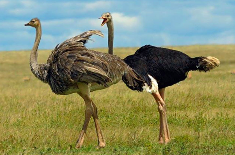 A large flightless bird from Africa; 175-275 cm in height; can weight more than 150 kg; unmistakable...