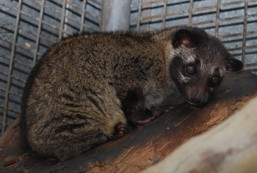 Head and neck: brown; very large round eyes; snout short, pointed; head round; ears moderate. Bod...