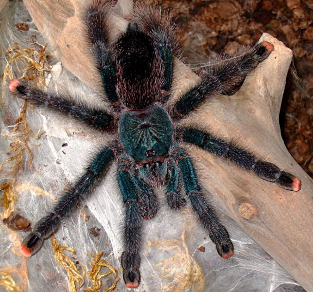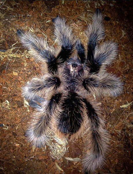 Head and body: cepalothorax brown or black; abdomen black Limbs: black; with long, curled brown ...