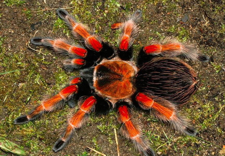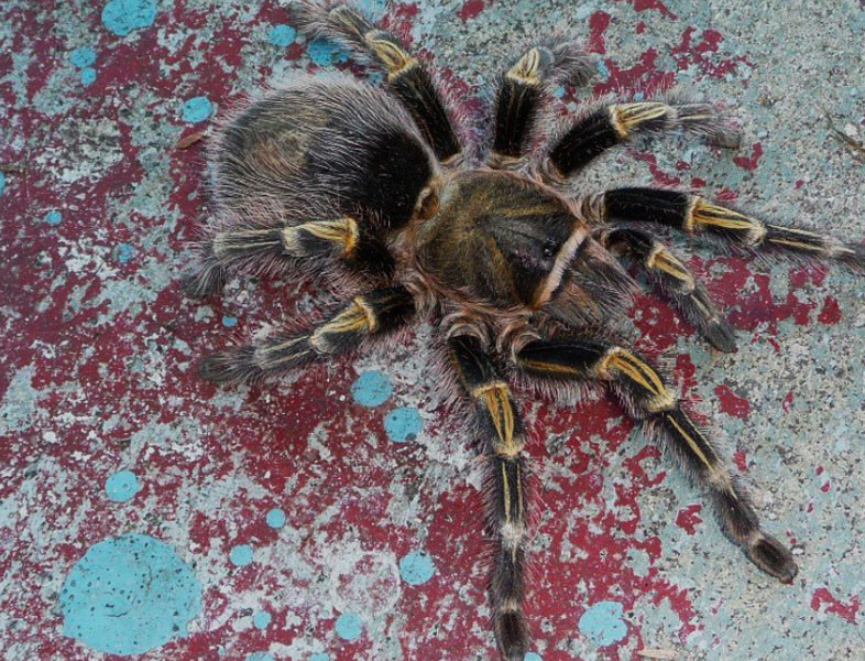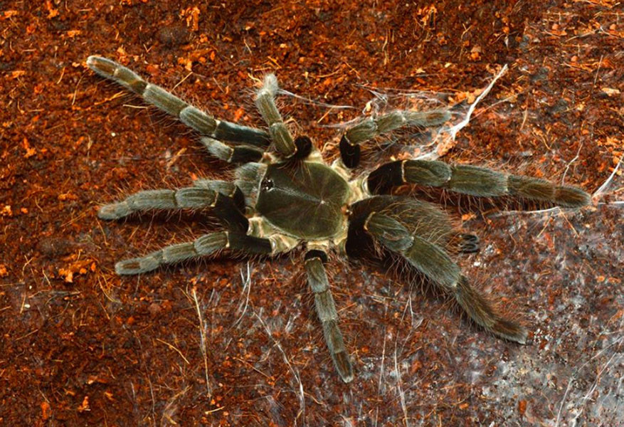 Head and body: brown, grey or black; abdomen oval in shape; no urticating hairs on abdomen Limbs:...