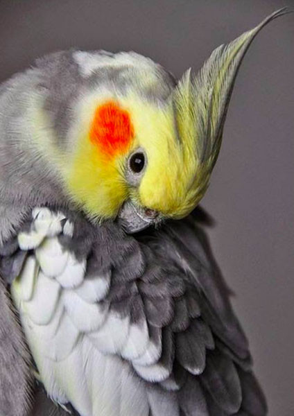 A long, slender cockatiel with long tail; 29-33 cm TL; 80-100 g. Head an...