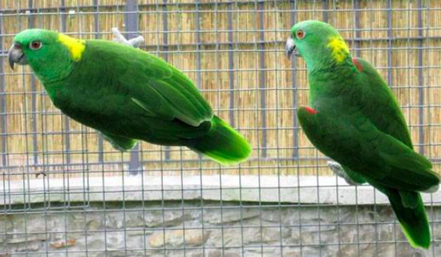 Head and neck: Forecrown and throat turquoise blue; midcrown, face and throat yellow, blue or green;...