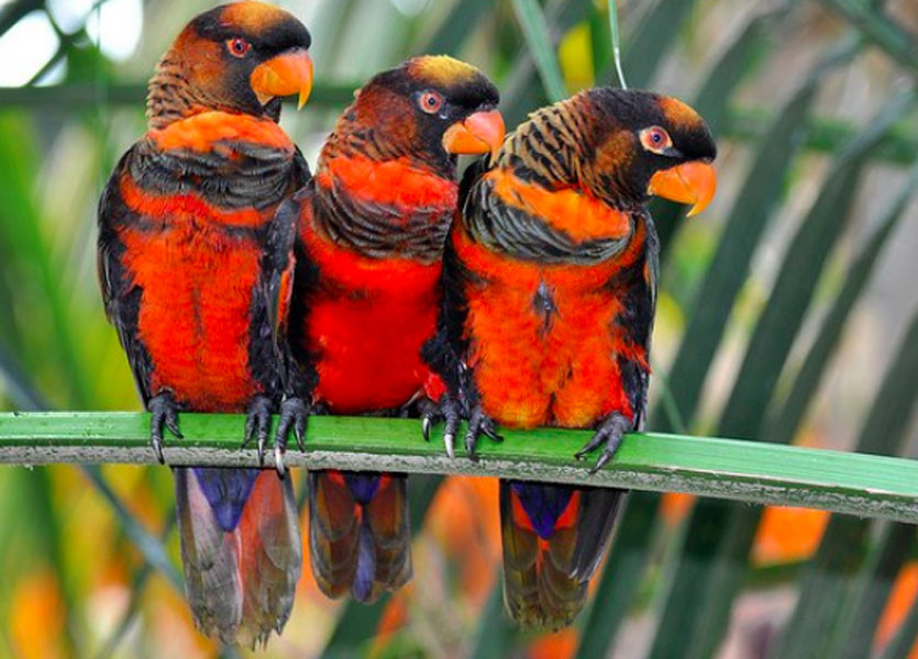 Head and neck: Forecrown white; crown blue; nape green; around eye red; bill light yellowish orange....