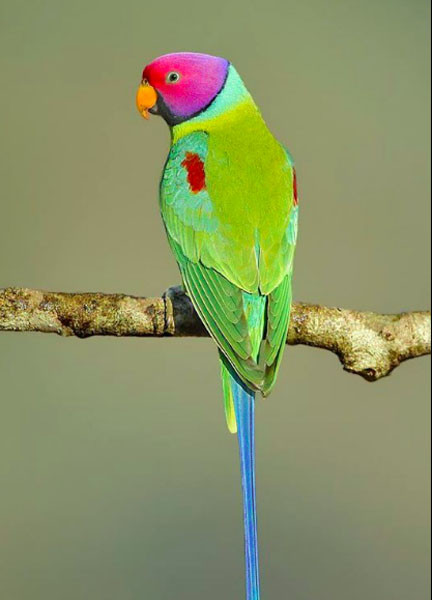 Head and neck: Head yellowish green; nape light blue; hindneck with light pink band; female no blue ...