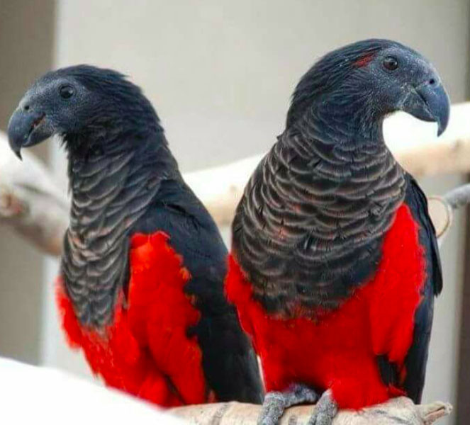 Head and neck: Head, neck, and throat red; skin around eye dark grey; eye reddish brown; cere dark b...
