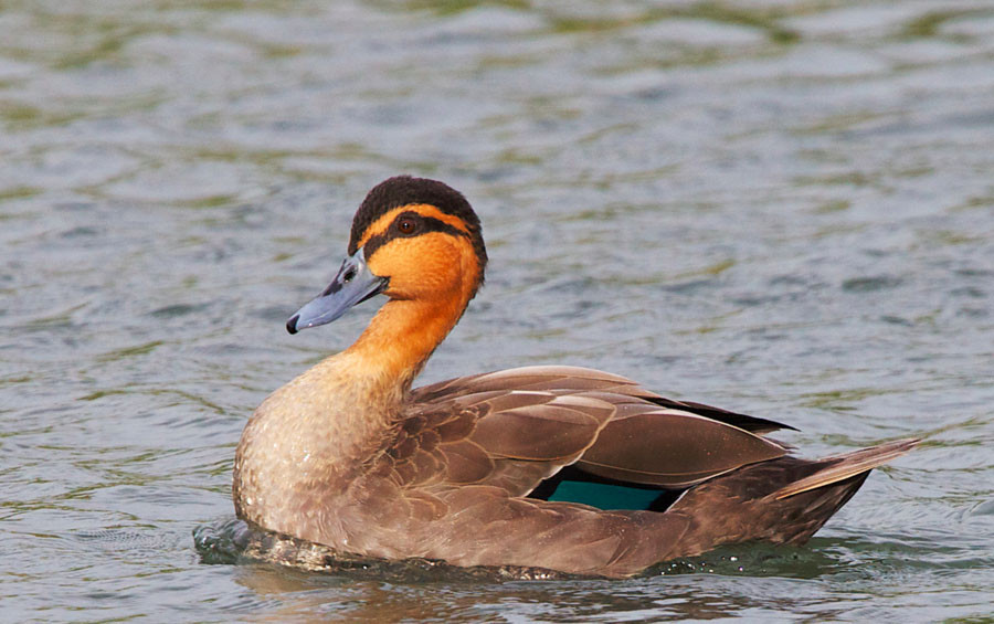 Head and neck: Head and neck brown; crown, nape, stripe from base of bill to nape dark brown; eye br...