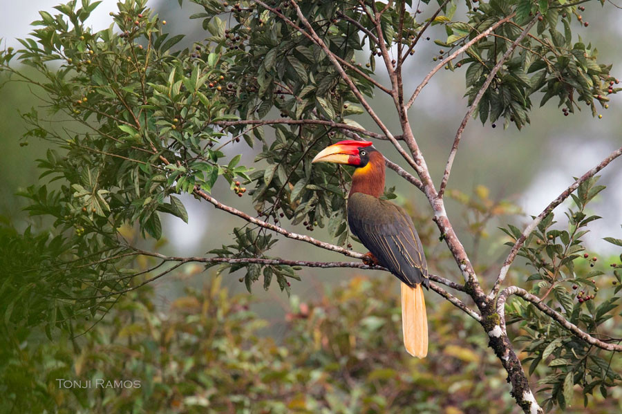 Head and neck: Similiar to Mindanao Rufous Hornbill but casque is much smaller; head and neck rufou...